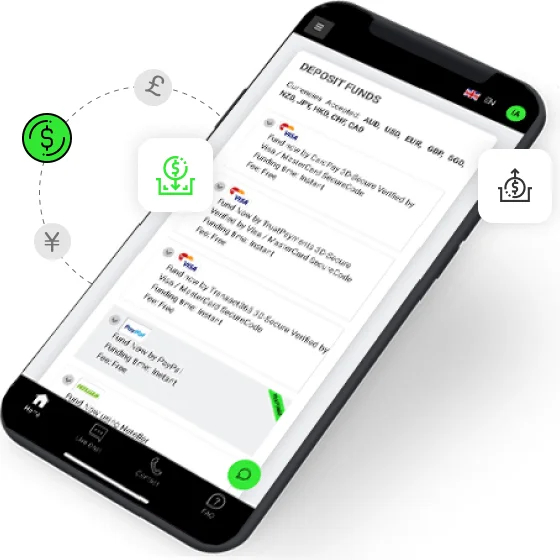 Haga depósitos y retiradas directamente desde la aplicación mediante diferentes divisas y múltiples métodos.